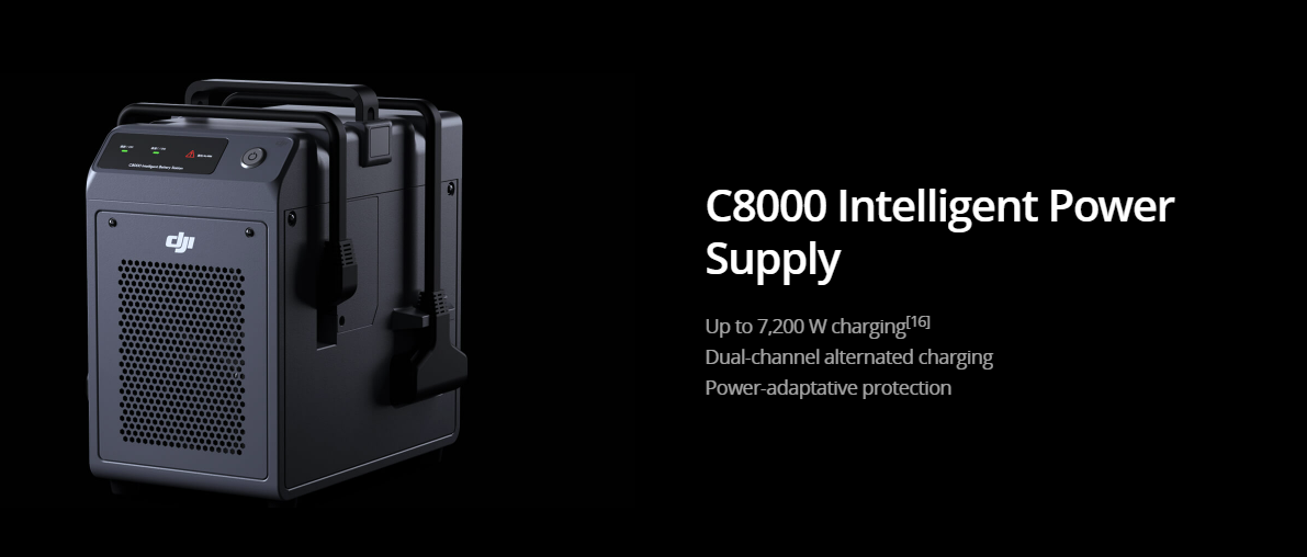The D12000iE Multifunctional Inverter Generator features electronic fuel injection (EFI) technology and saves fuel use by 15%[15]. The DB1560 Intelligent Flight Batteries charge in an Air-Cooled Heat Sink, enabling ultra-fast charging in 9 minutes[7]. The C10000 Intelligent Charger can charge batteries directly with utility power.