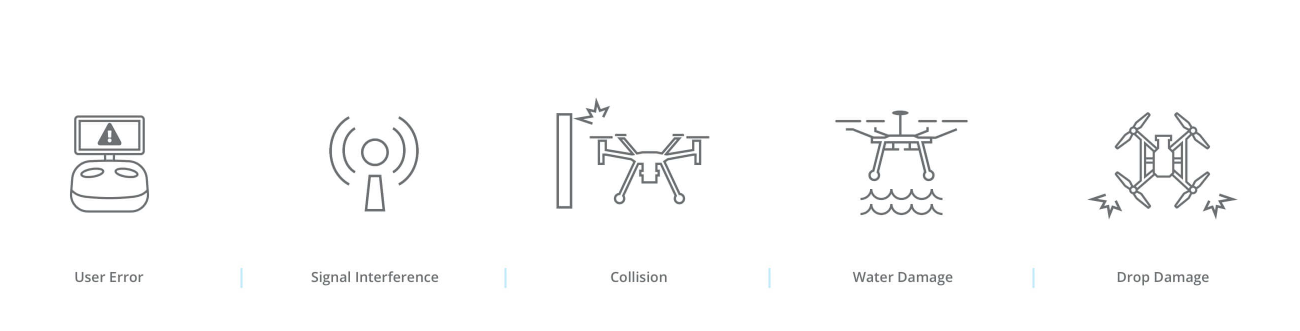 Fly fearlessly with DJI Care Enterprise, replace your aircraft even if its water damaged. Replacement units are also provided for: Crash & Collision Damage, Signal Interference, and other accidents caused by User Error.