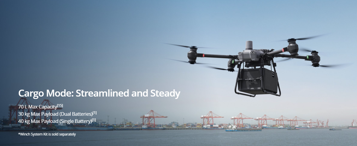 by DJIDJI FlyCart 30 is here to deliver the goods. A long-distance heavy lifter with powerful signal and intelligence, DJI FlyCart 30 supports Cargo mode and Winch mode and ascends beyond traditional logistical limits to deliver a safe, economical, and efficient air transport solution.