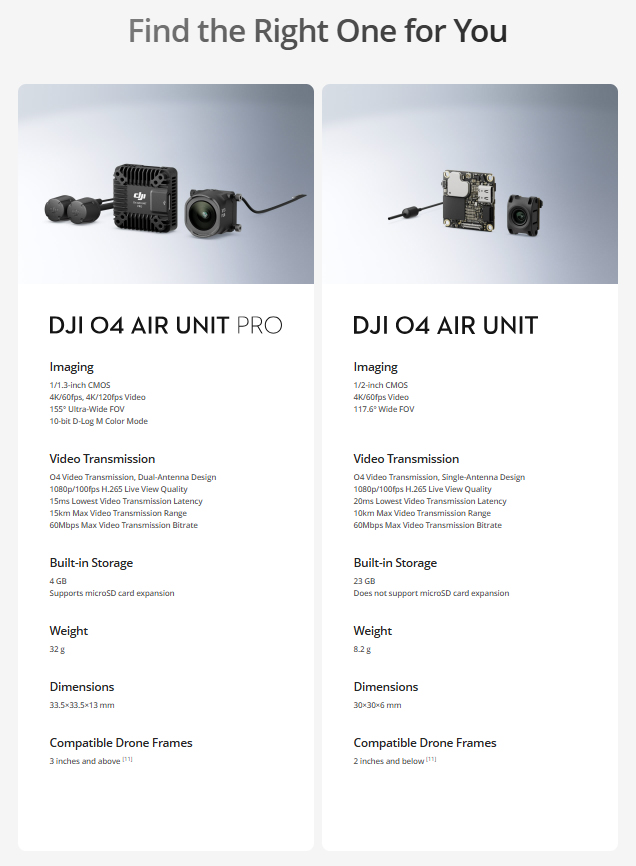 2. Under FCC standards, in an open outdoor environment free of interference, the max video transmission range for the DJI O4 Air Unit Pro is 15 km. For the DJI O4 Air Unit, max video transmission range is 10 km.