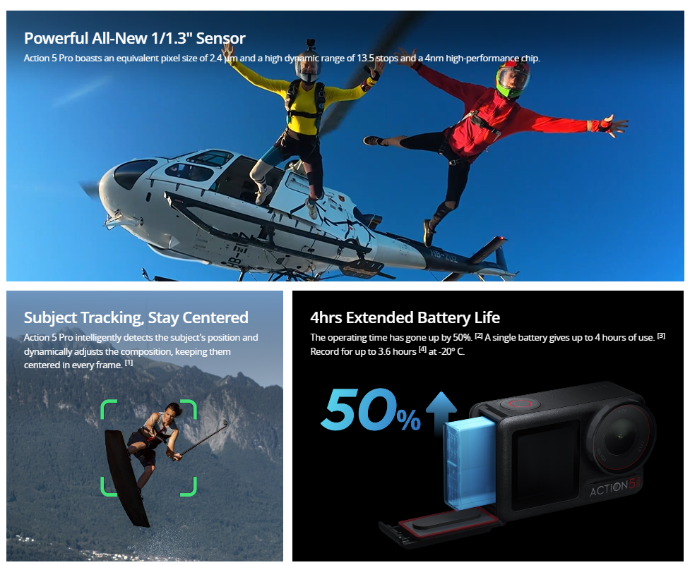 | Osmo Action 5 Pro | Osmo Action 4 | Osmo Action 3 |