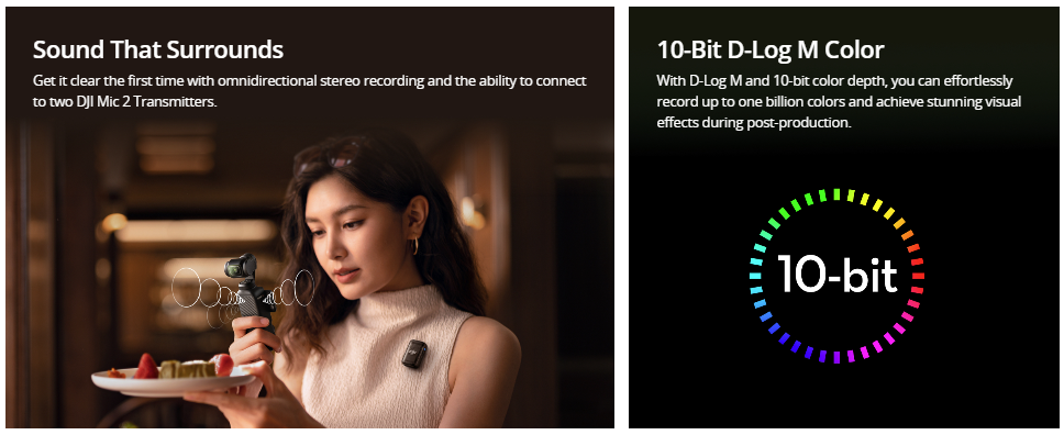 Stereo recording and direct connection to two DJI Mic 2 Transmitters ensure crystal-clear sound and effortless creation.