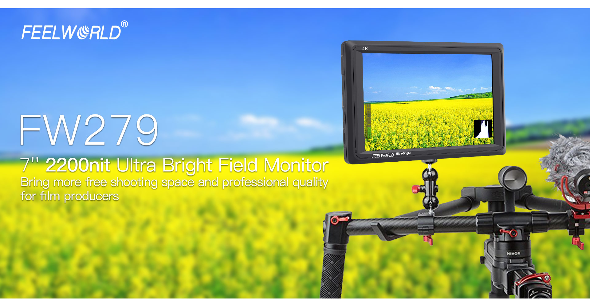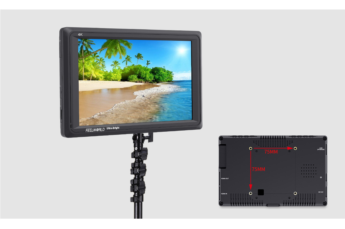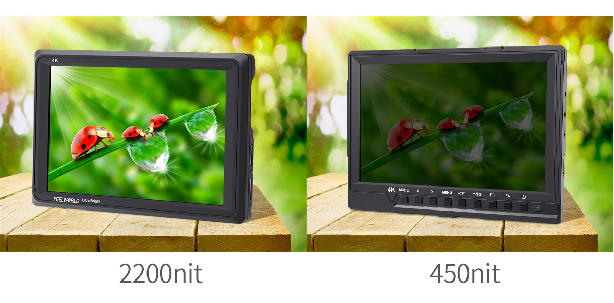 FEELWORLD FW279 ultra-high brightness monitor uses the "golden size" 7-inch panel. The FW279 monitor not only has the resolution and pixel density to make every shot look amazing, the high bright 2200nit screen at almost 5 times the brightness of conventional field monitors lets you shoot outdoors without reflections washing out your image. This makes it a great choice for gimbals, Steadicam and director's monitors, delivering a crisp image without the bulk and viewing angle restrictions of a sun hood.