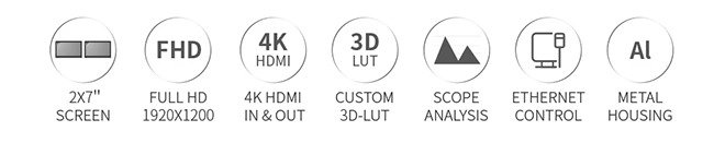 FEELWORLD D71 PLUS-H monitors are the ideal choice for 4K HDMI monitoring anywhere you need it. It has 2 independent 7 inch displays can be monitor two different cameras simultaneously, it easy to install in video wall or broadcast truck thanks to its 3RU form factor. You can use them for broadcast, post production, on set monitoring, flyaway kits, broadcast trucks and more.