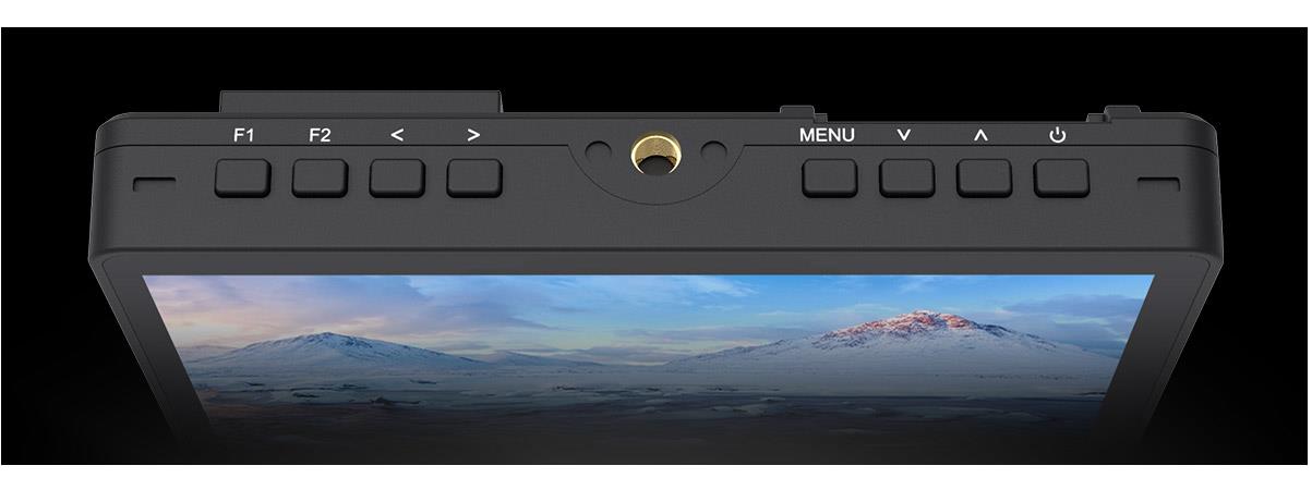 You can touch the screen or physical buttons to browse the menu and set functions. F5 Pro V4's key distribution design is simple and easy to operate. At the top of the monitor, there are 2 custom function buttons, you can set them as commonly used functions. You can also set the shortcut function of the left and right keys directly in the menu setting function, which can be set to backlight adjustment or volume adjustment, directly press "﹤" to decrease the value; directly press "﹥" to increase the value. And the monitor will automatically save the parameters you have previously set, and keep the original settings when you turn it on next time. It does not need to be reset, which is convenient and simple.