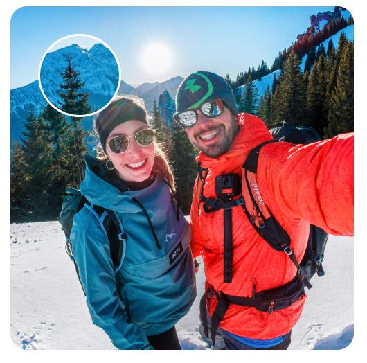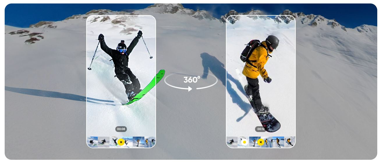 Shoot first, point later. Capture the action from all angles, then choose what to focus on after with 360 reframing. Use it with the Invisible Selfie Stick for impossible third-person view shots.