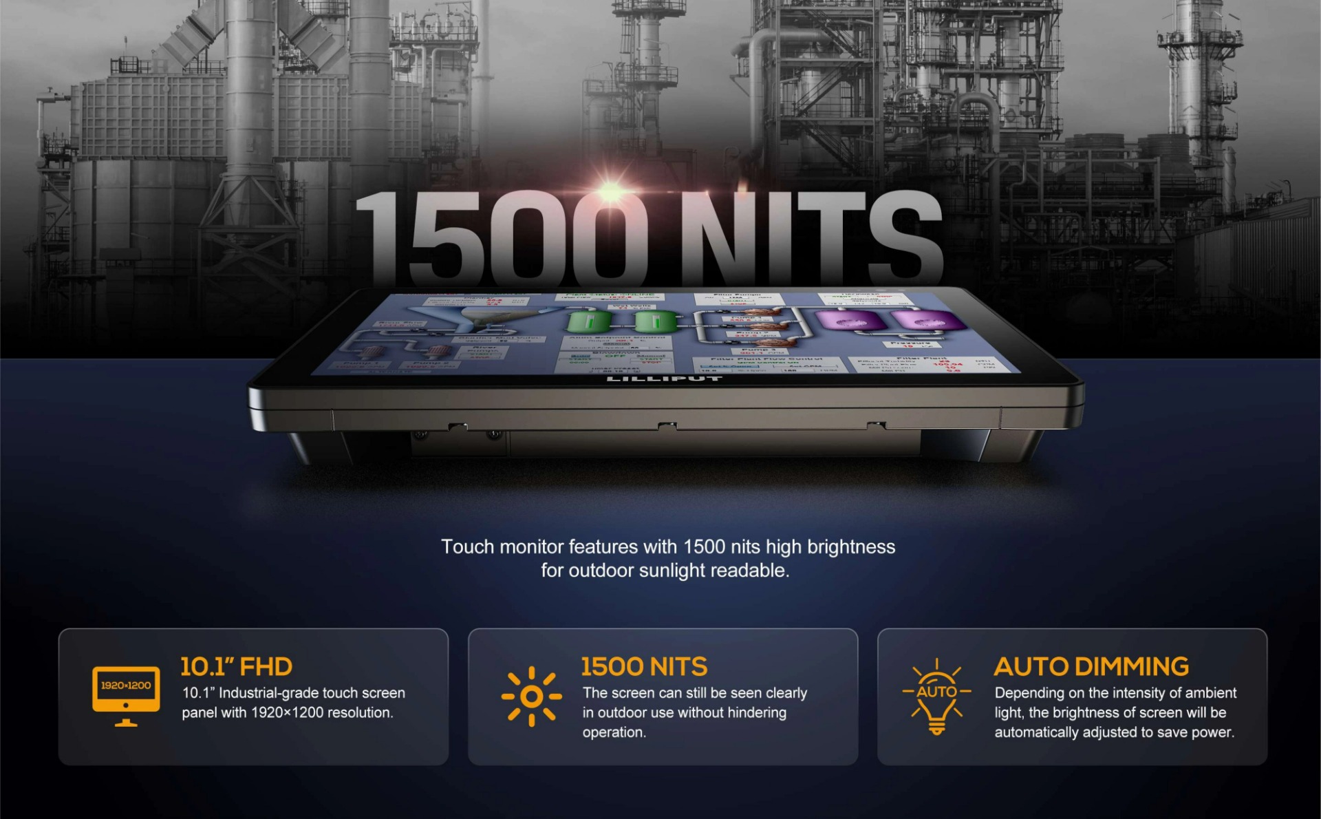 Lilliput FA1019/T is 10.1 inch 1500nits High Brightness Industrial-Grade Touch Monitor.