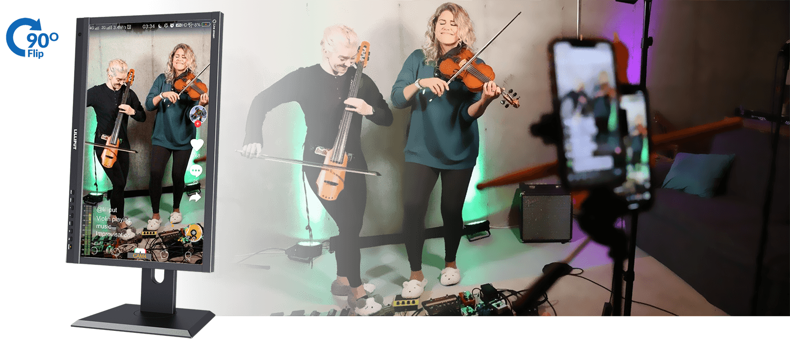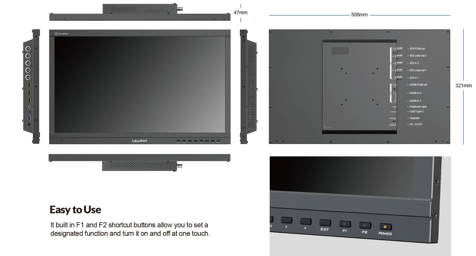 Monitor can be switched live up to 4 1080P high quality video signal inputs, which make it easy to create professional multi camera events for live streaming. At a time when live stream in mobile phone is popular, monitor innovatively built in phone mode so as to directly display a vertical video in multi camera. All-in-one capability greatly reduces the cost of productions.