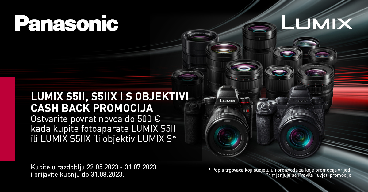 Kupite neki od dolje navedenih LUMIX S fotoaparata ili objektiva serije S u razdoblju od 22. 5. 2023. do 31. 7. 2023. te ostvarite povrat novca u iznosu do 500EUR. Iznos povrata ovisi u modelu kupljenog fotaparata i objektiva te su navedeni niže u tablici.
