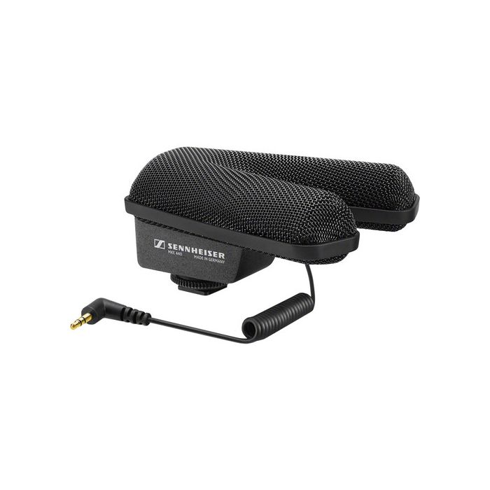 The MKE 440 from Sennheiser is a compact stereo shotgun microphone that predominately captures focused stereo sound from within the direction of filming and rejects the majority of off-axis noise from outside the camera focus. The microphone utilizes two mini-shotgun elements that are mounted in a V-shape arrangement, which outperforms mini AB, MS, or XY setups.