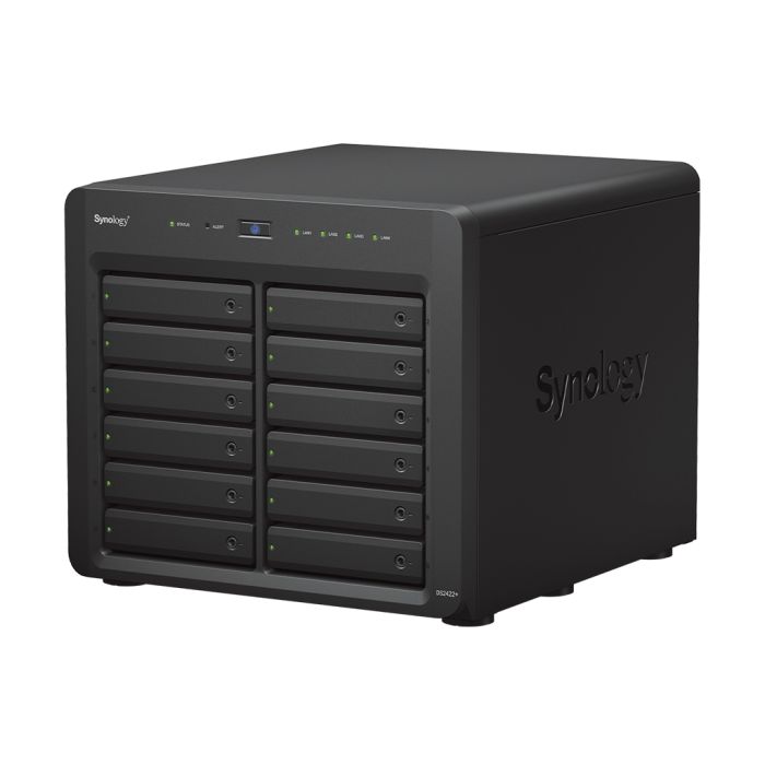 by SynologySynology DiskStation DS2422+ is a compact 12-bay desktop NAS that takes file sharing and management to the next level. The unit can be scaled to 24 drive bays and excels at serving large data sets in multiuser environments. It comes with powerful file management, surveillance, and backup capabilities, and can serve as high-quality video and VM storage. With support for up to 32 GB of memory, NVMe SSD cache, and 25GbE network cards, the DS2422+ is ready for large-scale business applications.