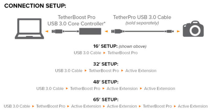 The TetherBoost Pro USB 3.0 Core Controller alleviates a common problem amongst USB 3.0 camera and digital back users who are experiencing dropped tethering connections or are unable to get a tethered connection started at all. These challenges are affecting some of the most popular cameras on the market, including USB 3.0 cameras from Nikon, Canon, Phase One, Mamiya Leaf, and Pentax.